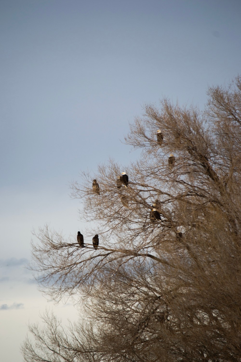 Upon further investigation you will realize the black objects are eagles, dozens and dozens of eagles! Perched carefully in the trees, located behind and just to the right of West Point Shack.
