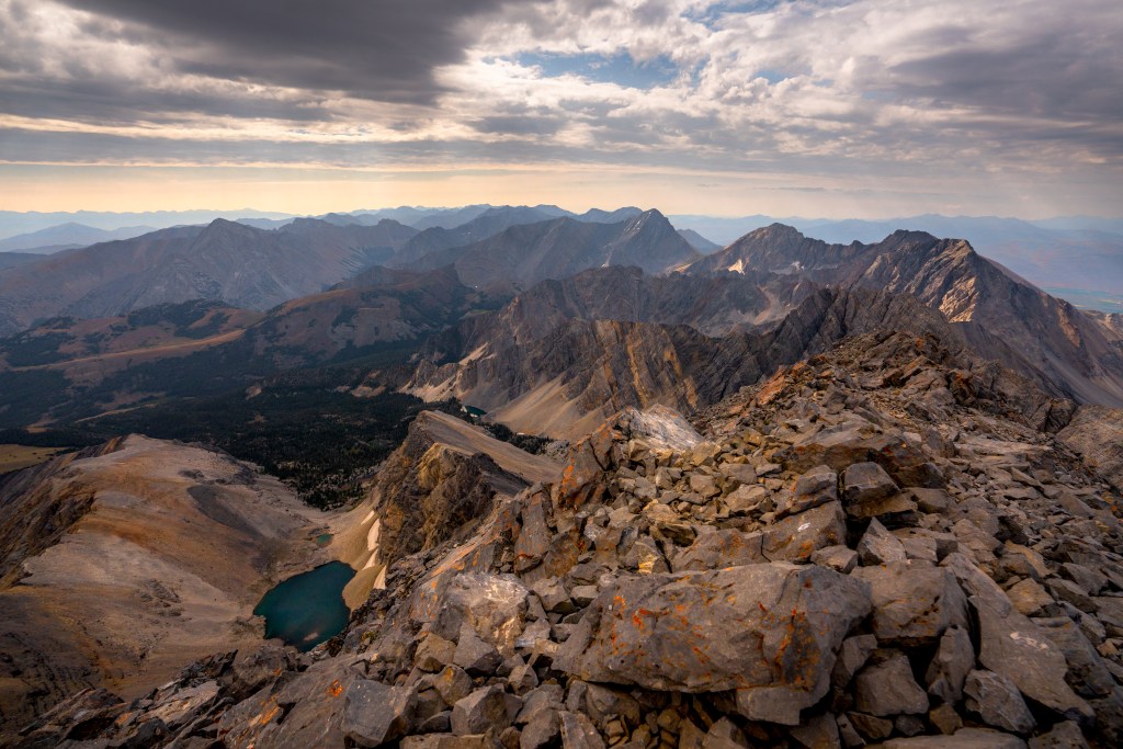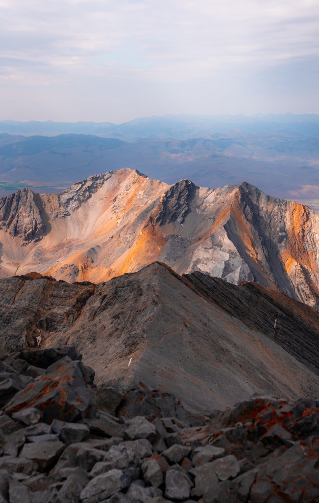Summiting is the BEST FEELING EVER! Take photos with the Borah Peak sign and enjoy views of towering limestone mountains all around. 360 views of the Lost River Range and others!